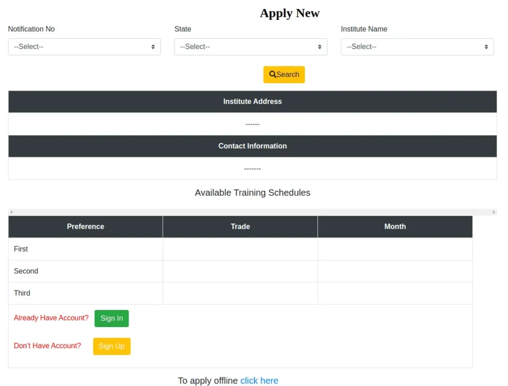 7. नजदीकी ट्रेनिंग सेंटर कोर्स में पद होने पर ‘अप्लाई’ ऑप्शन पर क्लिक करें।